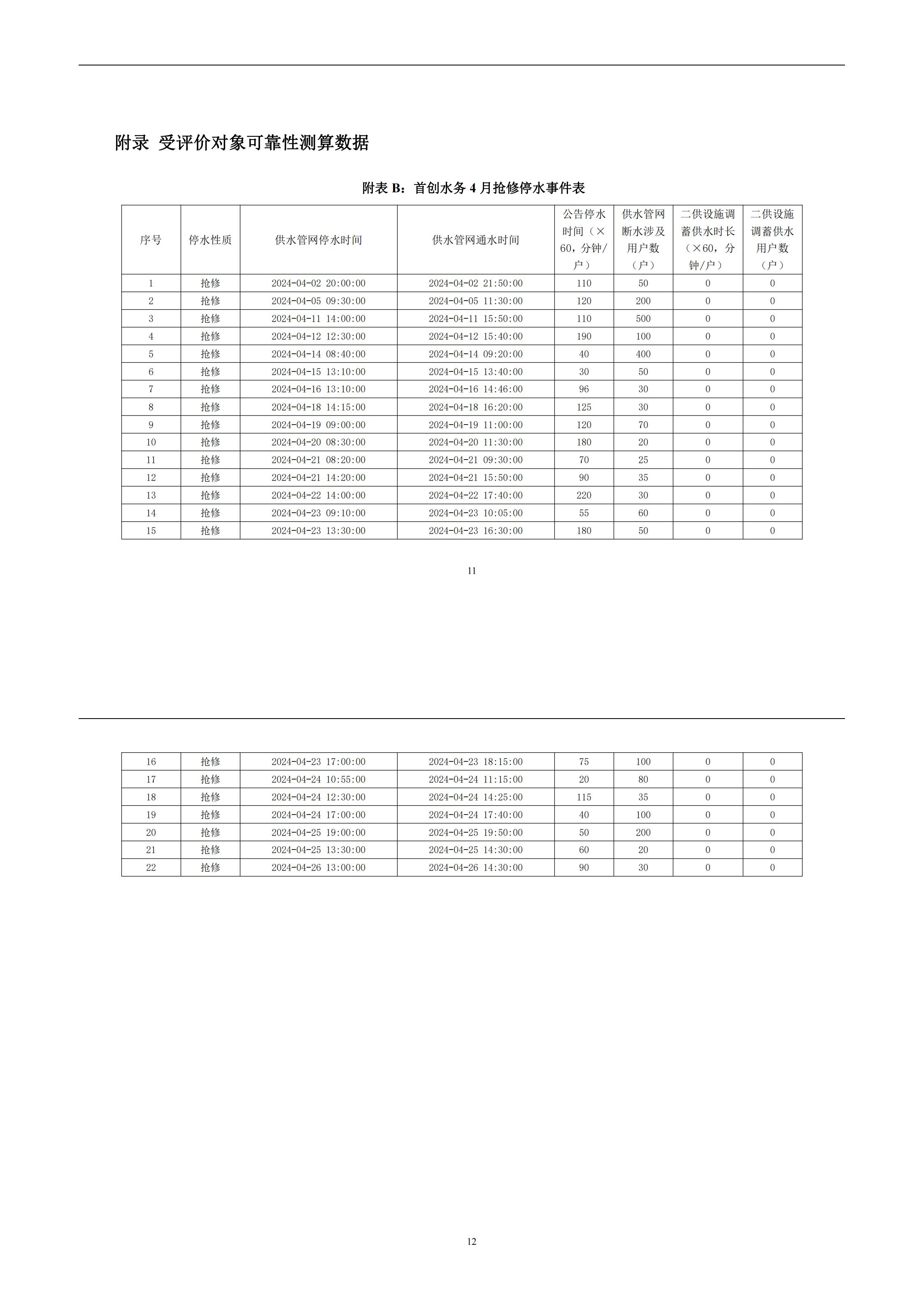 芜湖首创水务可靠性评价报告月报(2024年4月)