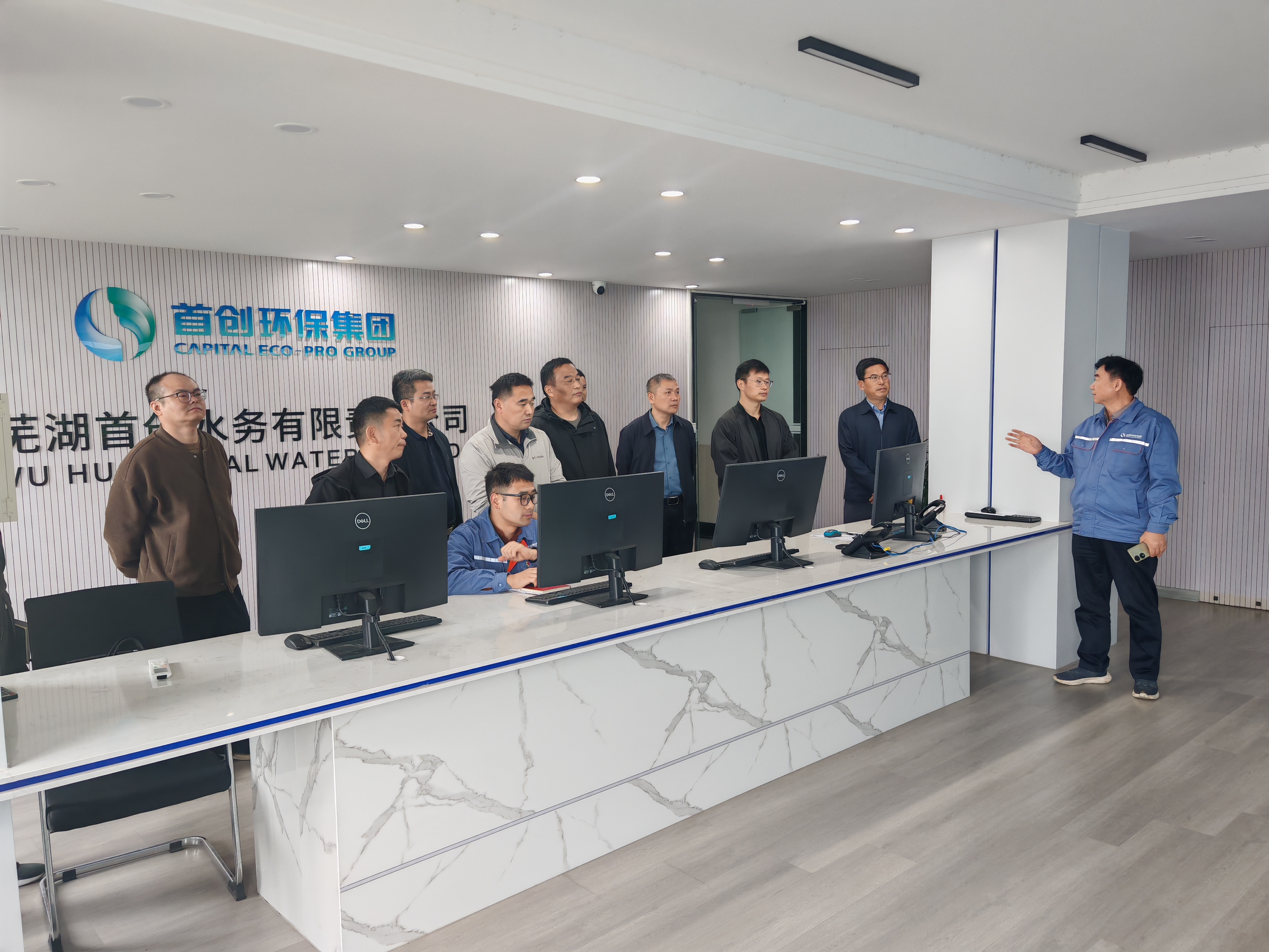 考察团实地参观了芜湖首创新港荷圩取水泵站、芦南水厂调度室、繁阳镇芜湖首创一楼营业大厅及七楼运营调度平台,观摩了水厂机泵运行智慧化控制系统及智慧水务系统演示。通过供水管网GIS、水厂自控、水质在线监测预警等核心模块展示,全面了解我区从源头到龙头的数字化管控模式。